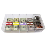 5 Compartment Acrylic Currency Tray. Removable 4 compartment coin tray insert for additional coin storage.. The money tray has 300 currency wrappers included!. Ideal Design for a safe, desk drawer, or lock box. Cross Reference: 225107204. Currency tray dimensions: 15-3/8" x 7" x 4".