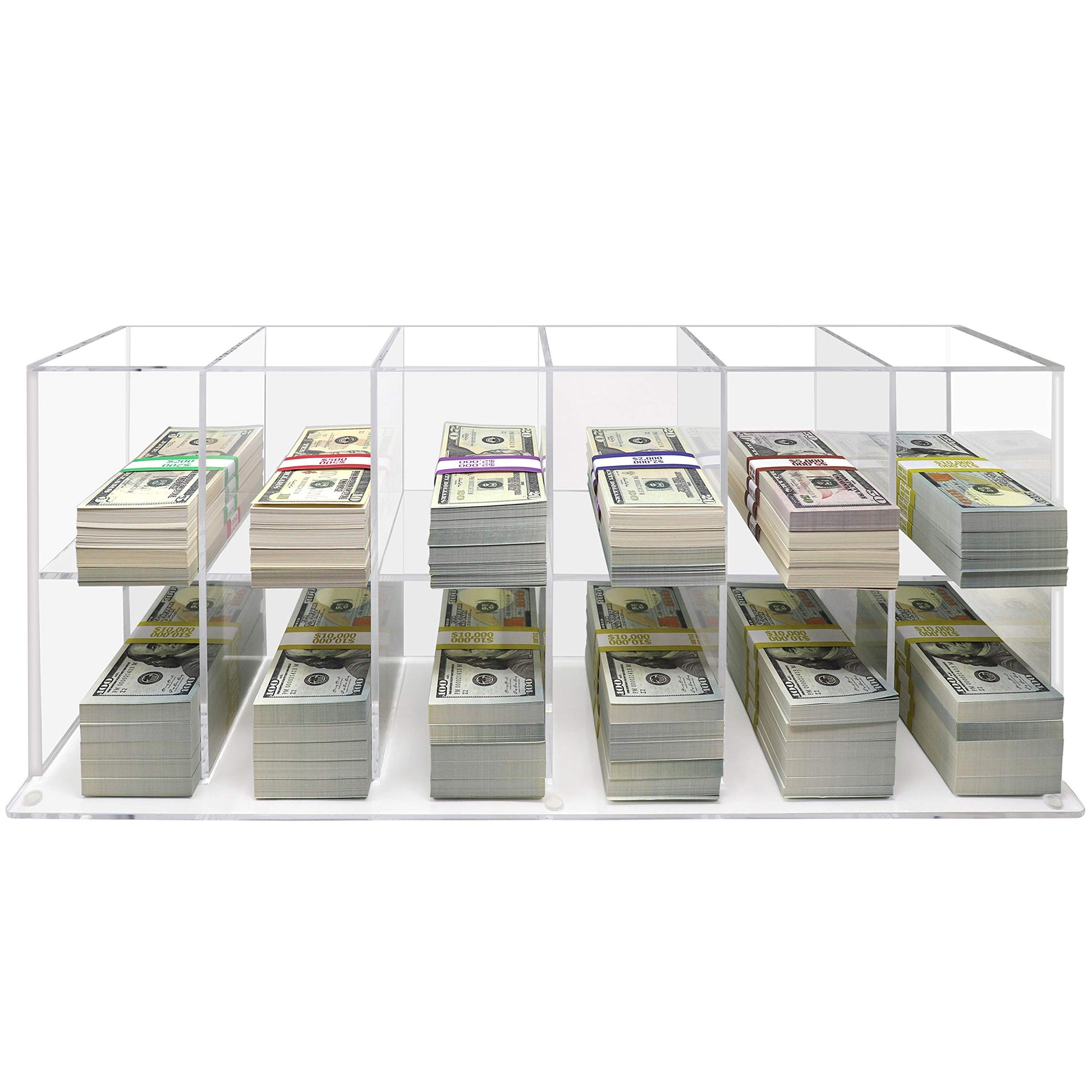 Nadex Clear Acrylic Cash Sorter Tray - 12 Compartment Stacked Tray Includes 110 Pcs Bill Wrapper Straps - Separate and Organize Cash Denominations. Ideal for Banks, Retailers, Stores, Money Exchange, Casinos, Nadex Clear Acrylic Cash Sorter Tray includes cash and coin compartments and 110 pcs bill wrapper straps. 12 cash compartments for all your denominations, store cheques or any other paper documents. Constructed with clear durable acrylic able to withstand up to everyday use, keeps your bills strapped, accessible & neatly organized. Light weight, stacked design makes it easy to access or store. Open cover compartmentalized design makes it easy to access any denominations, prevents error and improves efficiency. 5mm thich long wall, 9mm thick short wall. Nadex manufactures a variety of coin management and money storage and security products. Customer satisfaction is out priority and our tamper evident bags come with a Lifetime Warranty. Please don’t hesitate to contact us with any questions or concerns.