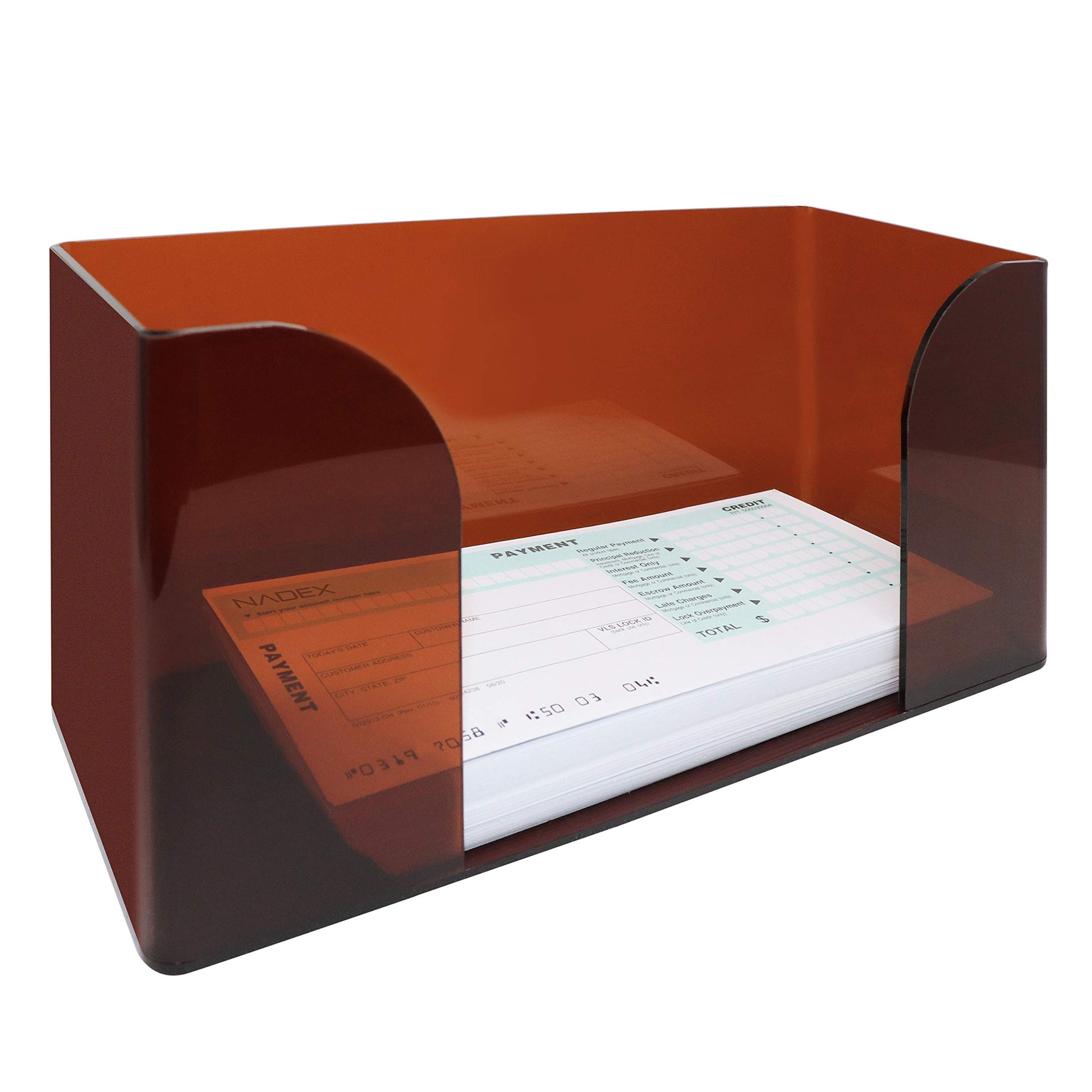 Nadex Smoked Acrylic Check Tray - 2.5mm Thickness Durable Economical Deposit Ticket and Cheque Holders - Holds Deposit Slips, Tickets, Vouchers, Cheques. Ideal for Banks, Retailers, Stores, Money Exchange, Casinos, Nadex Acrylic Check Tray is a cost effective solution to sort, store, and handle deposit slips, tickets, vouchers, checks, and more. Open-top acrylic design makes it easy to access single sheet of paper, easy to refill and display on public locations. Constructed with 2.5mm thick durable acrylic able to withstand up to everyday use, keeps your checks accessible & neatly organized. Stack or place side by side to maximize usage of limited space, easy to clean and maintain. Nadex manufactures a variety of coin management and money storage and security products. Customer satisfaction is out priority and our tamper evident bags come with a Lifetime Warranty. Please don’t hesitate to contact us with any questions or concerns.