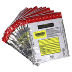 25 Pack of clear tamper evident bank deposit bags for proper transfer security. Made in North America using quality materials, a thoughtful design and the use of FRAUDSTOPPER technology. Bags are also made from fully recyclable plastic.. FRAUDSTOPPER technology is categorized as LEVEL 4, which is the highest security level, as it incorporates both heat and cold-indicating technology. Use of cooling agents will cause VOID graphics to appear on the closure. If heat sources are used, blue dots will appear on the closure to indicate tampering.. Security Features: Inked self-sealing closure which will deform and change colors if tampered with. Patterned and serrated edge closure system to promote fracturing in the event of a tampering attempt. Extruded plastic is very resistant to tearing, and cannot be smoothed back to its original state.. Thoughtful Design: Sender and receiver instructions written on the bag, graphic box for writing deposit details. Each bag has a unique deposit number with a scannable UPC for keeping track of your deposits. Peel-able reciept label on the inside of the closure, which you can peel off before sealing the bag. Receipt has the bag ID number as well as spaces for writing deposit details.. Our Guarantee: Nadex manufactures a variety of coin management and money storage and security products. Customer satisfaction is out priority and our tamper evident bags come with a Lifetime Warranty. Please don’t hesitate to contact us with any questions or concerns.