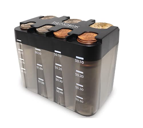 • Nadex Desktop Coin Sorting Dispenser - Organizes, Stores, Dispenses Coins in Individual Denominations - Compatible with Dollars, Quarters, Dimes, Nickels, Pennies.