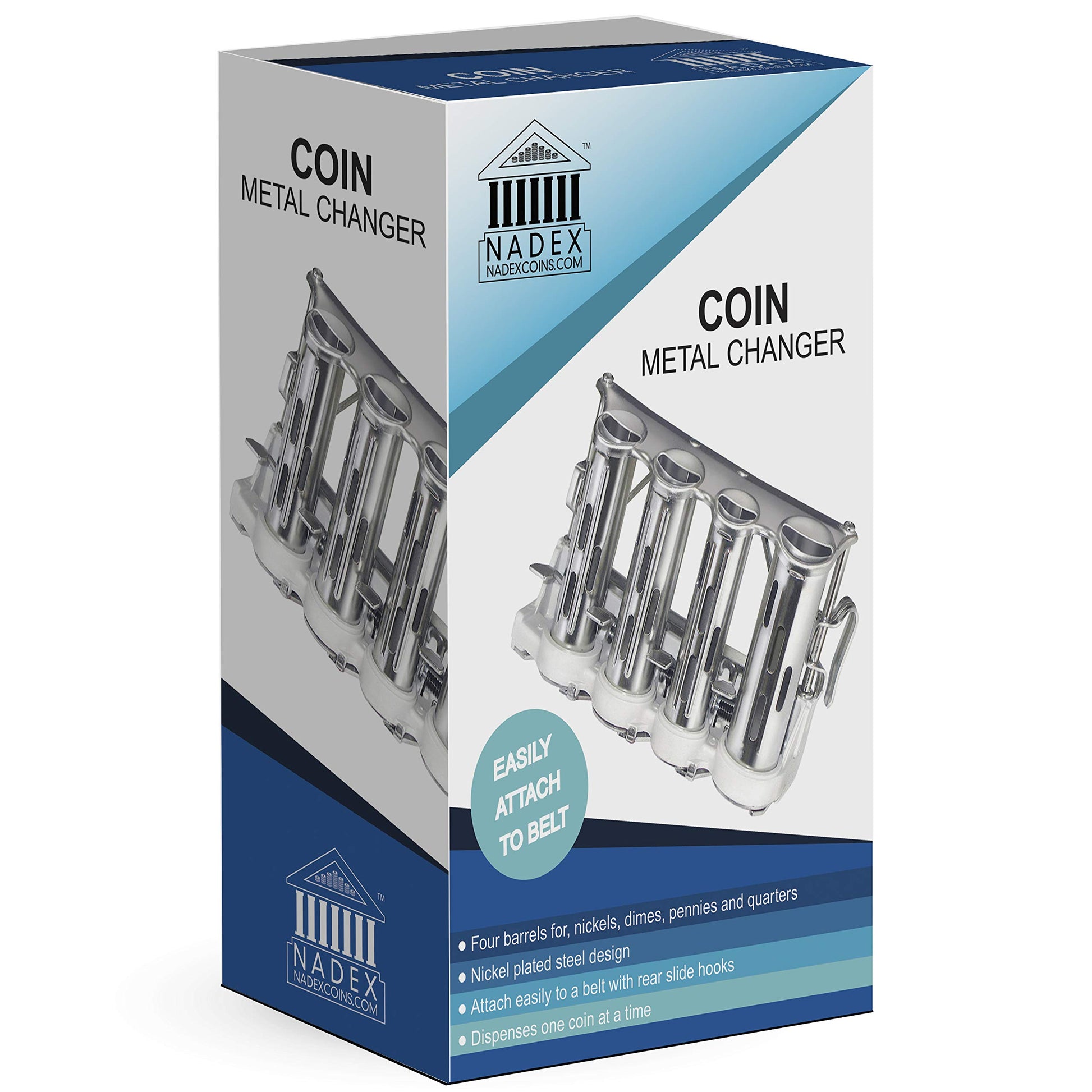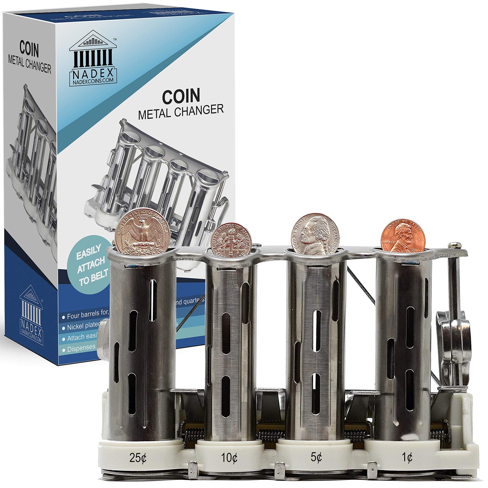 - Higher Quality, Lower Price: The Nadex Coin Dispenser is made of Heavy Duty Steel which ensures this product will last for decades to come. Our research shows this product is being used by servers, fast food restaurants, carnivals, drive-ins, garage sales, flea markets and many other businesses. In addition, many people are using the money changer to organize change in their cars to use for parking meters, tolls(EZ pass), and fast food orders. Once you are organized, nothing can stop you!!!
