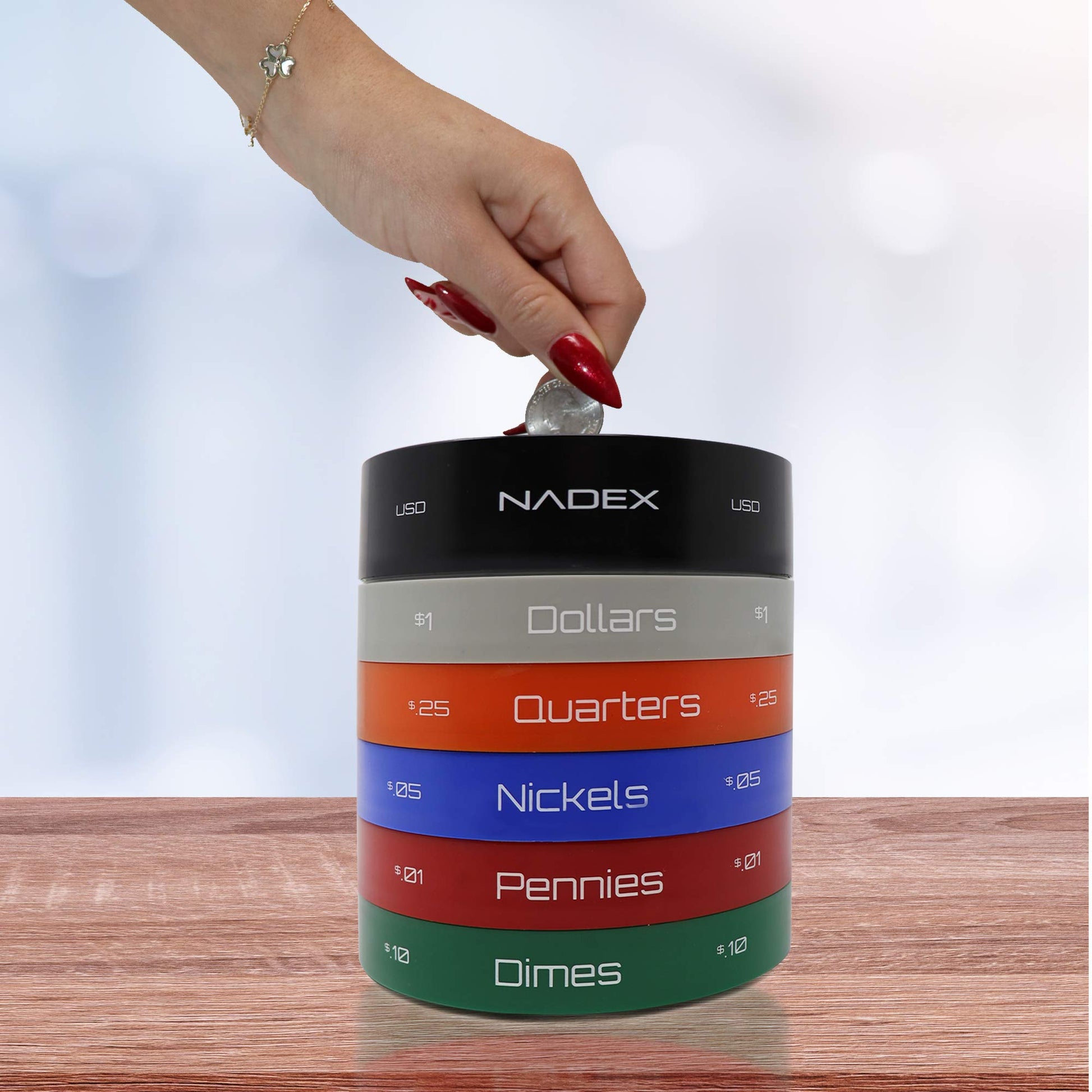Twist & Shake Color Coded Coin Sorting Jar. Stop wasting hours sorting through coins. Utilize our Nadex coin sorting trays to do all the hard work for you. You will remember these three words, Pour, Twist, and Shake!