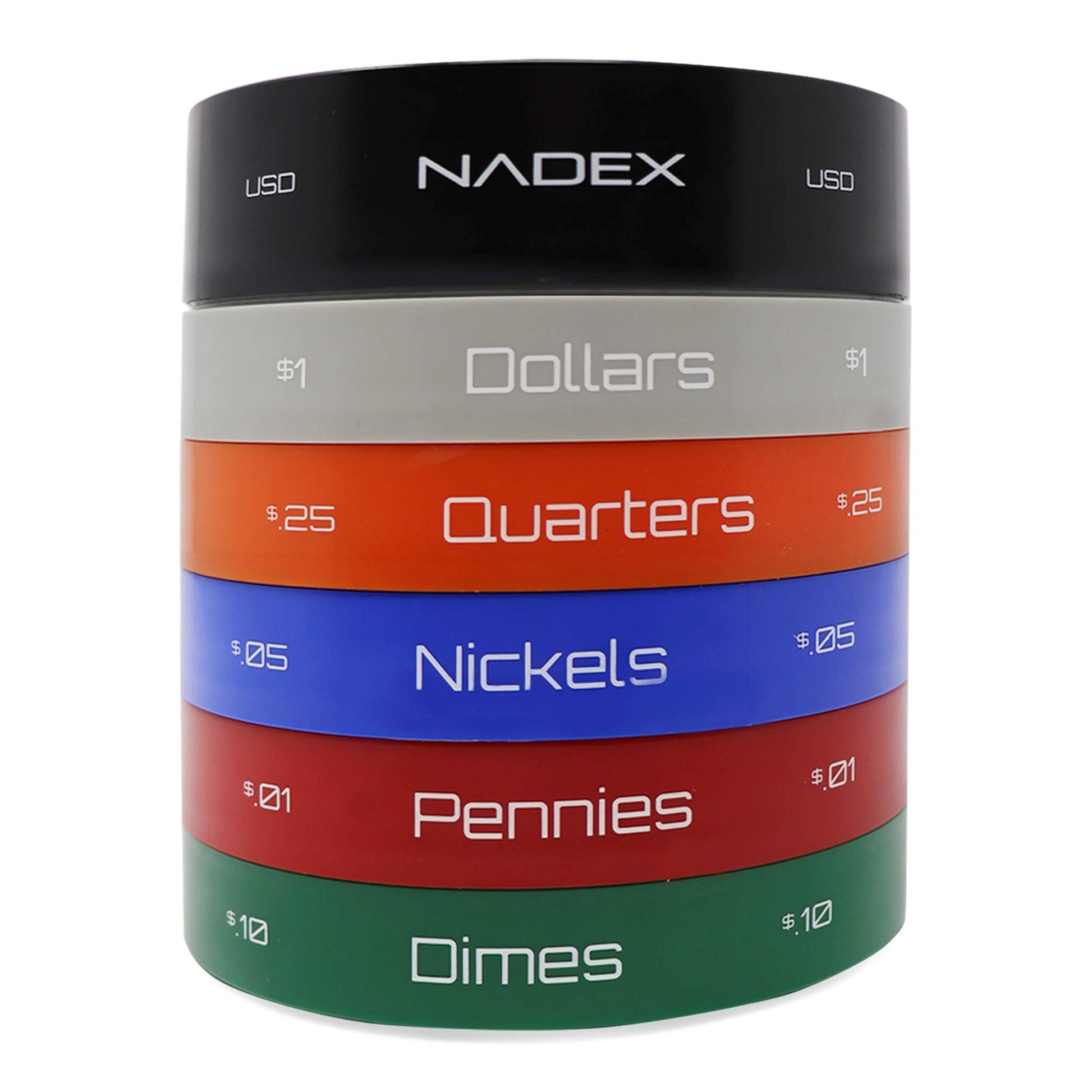All in One Twist n' Shake 6 section coin storage and sorting container.. Great device for sorting and storing your coins! Put your coins into the top, shake, and your coins will filter down into their appropriate sections. You can also separate entirely to use as coin trays.. Separate ABA color coded trays for pennies, nickels, dimes, quarters and dollar coins.. Perfect for classrooms, offices, at home sorting and more!. Our Guarantee: Nadex manufactures a variety of coin management and money storage and security products. Customer satisfaction is out priority and our sorter comes with a 1-year warantty. Please don’t hesitate to contact us with any questions or concerns.