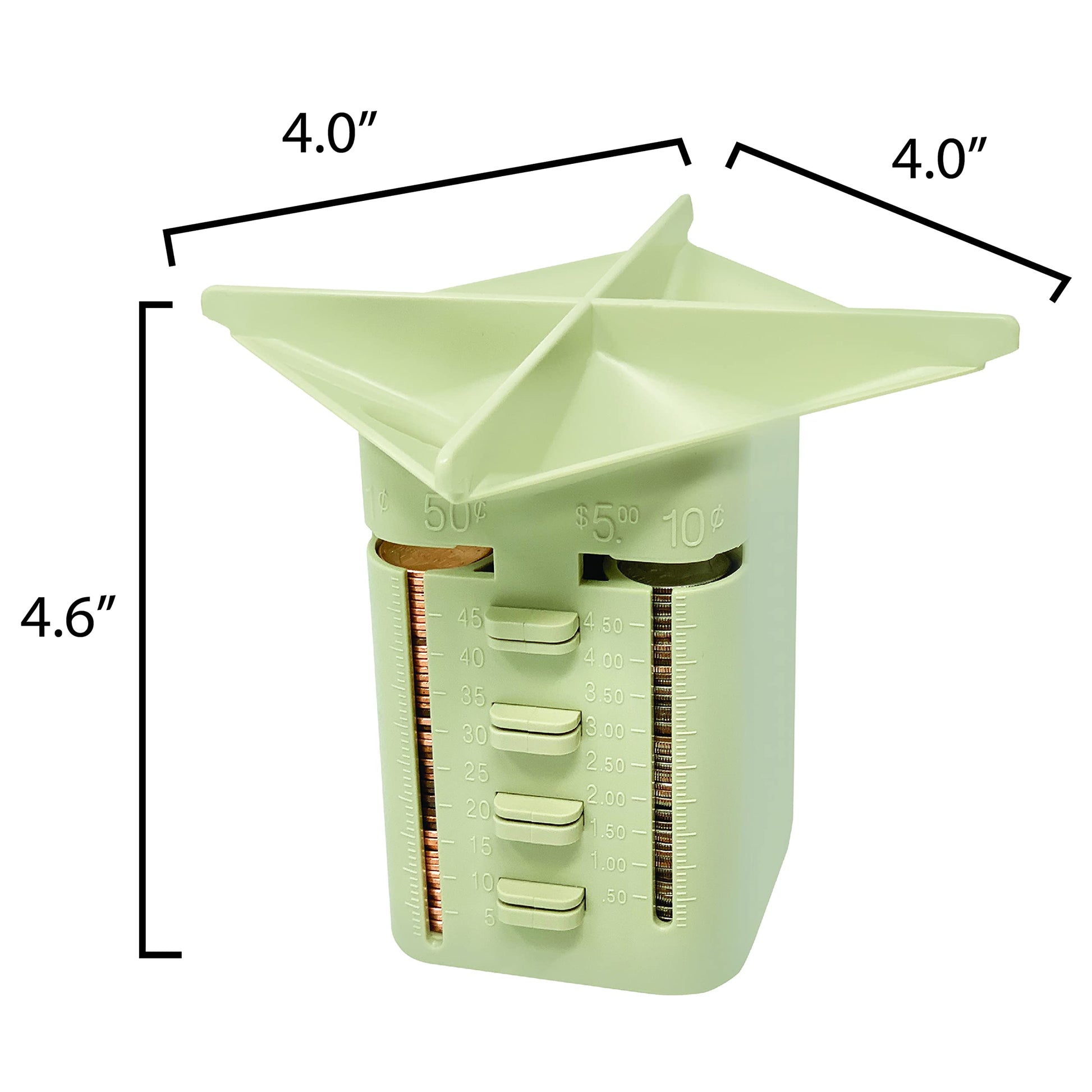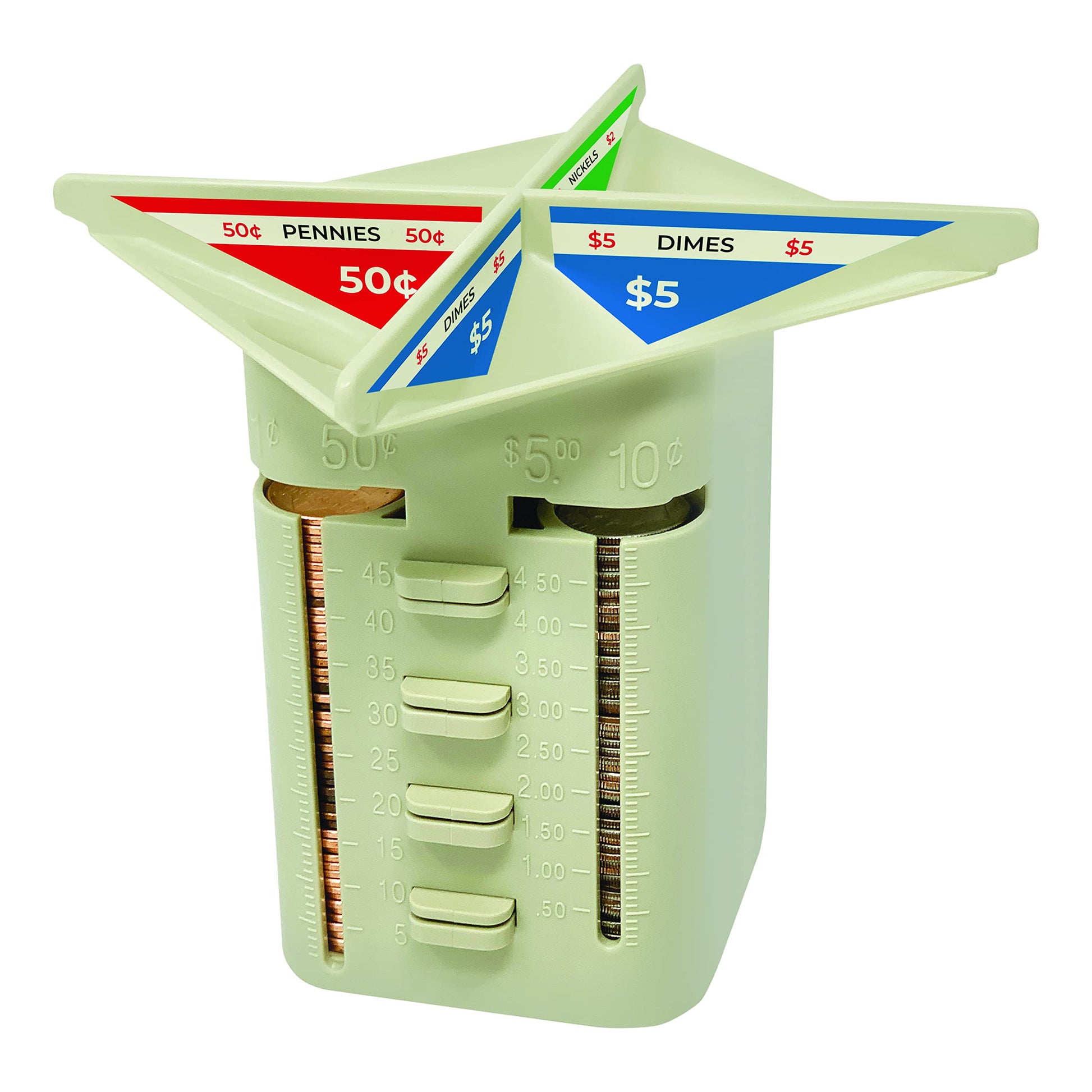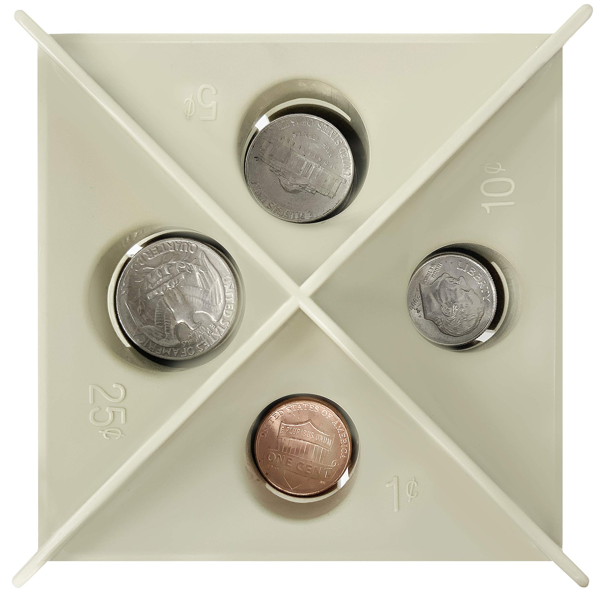 4 Compartment Manual Coin Sorting and Wrapping Organizer. Coin Sorter Tube with Label Stickers for Coin Denomination and 32 Wrappers. Durable high quality material stores Pennies, Nickels, Dimes and Quarters. Vertical counter slots show amount of coins at a glance.