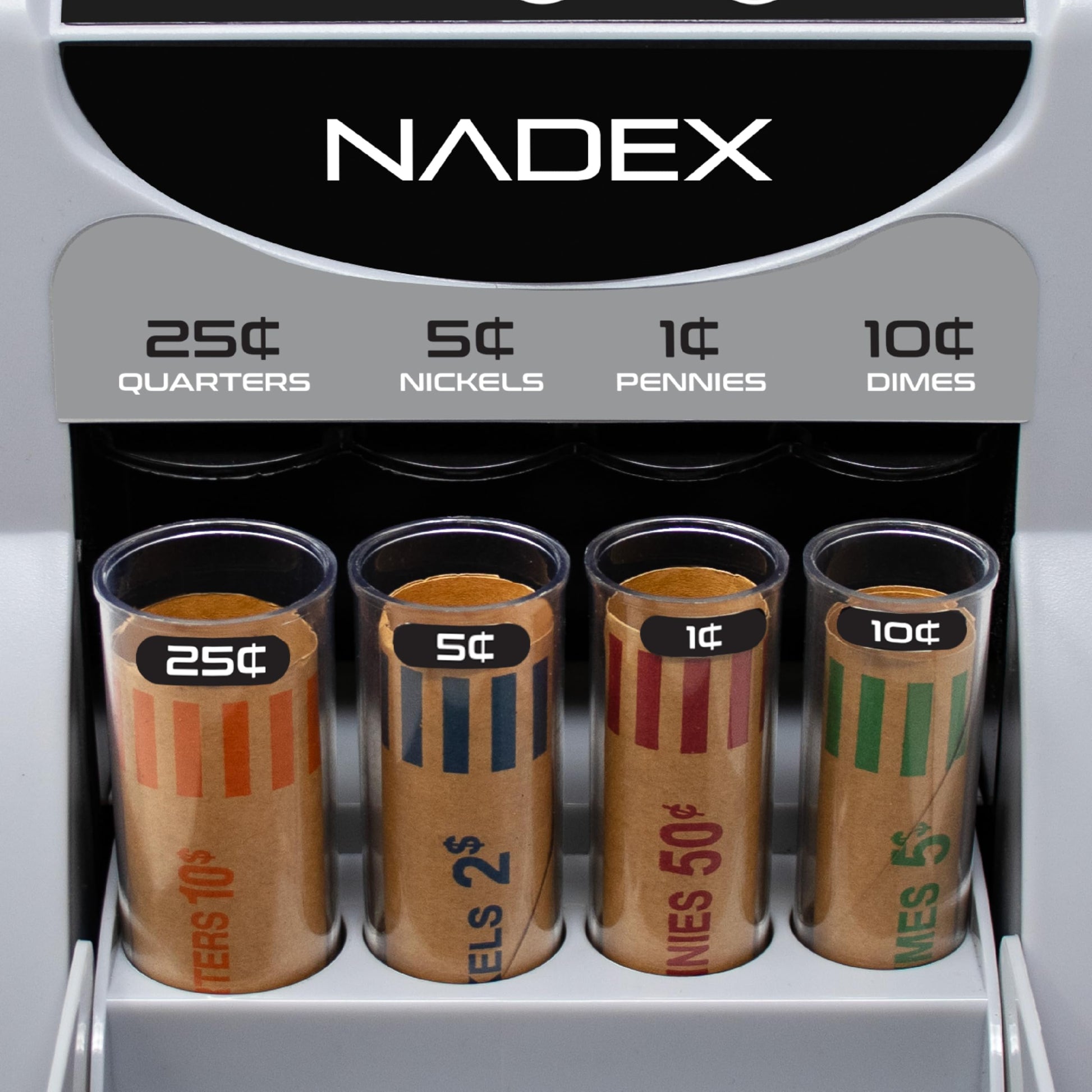 - Includes 4 coin tubes for pennies, nickels, dimes, and quarters. Includes starter preformed coin wrappers