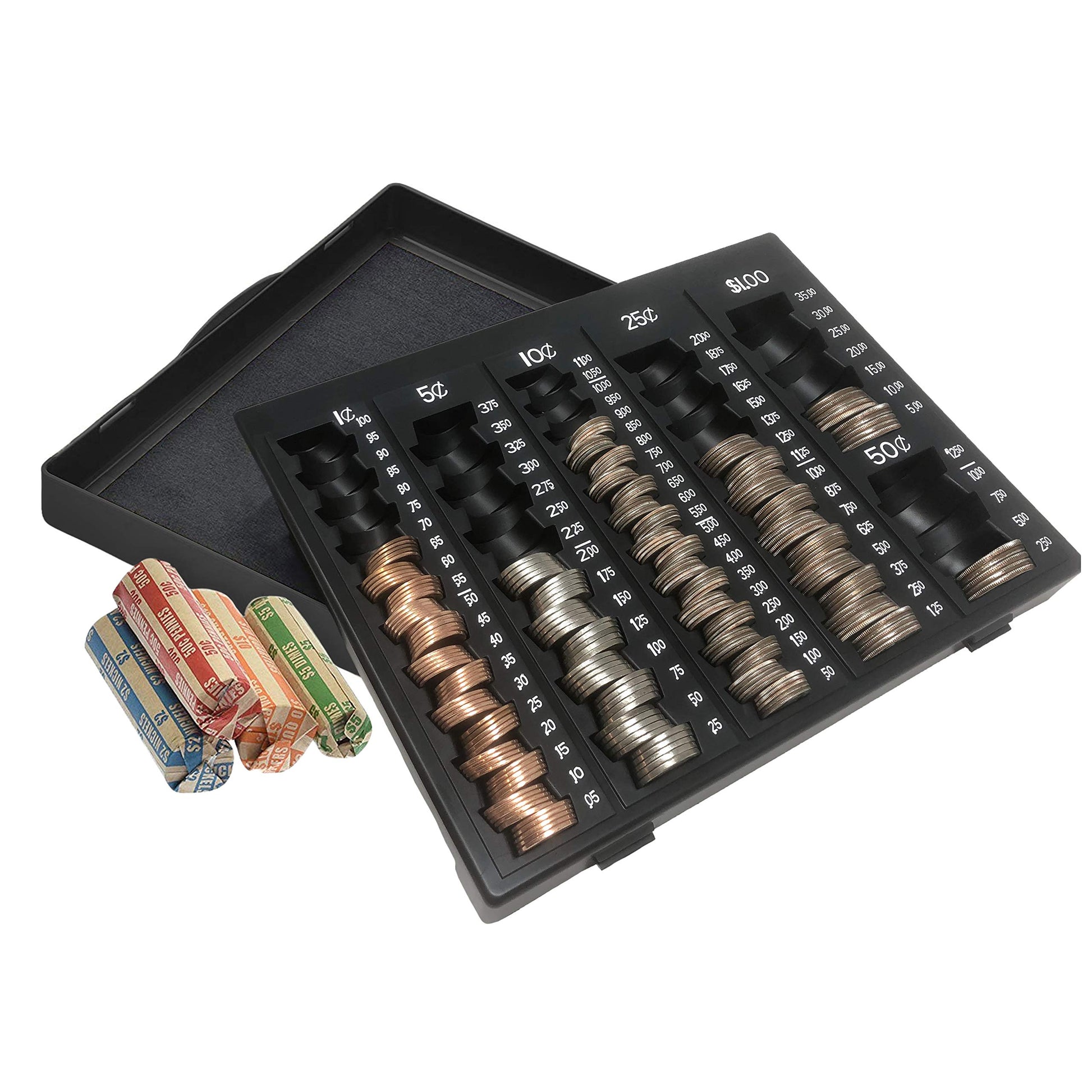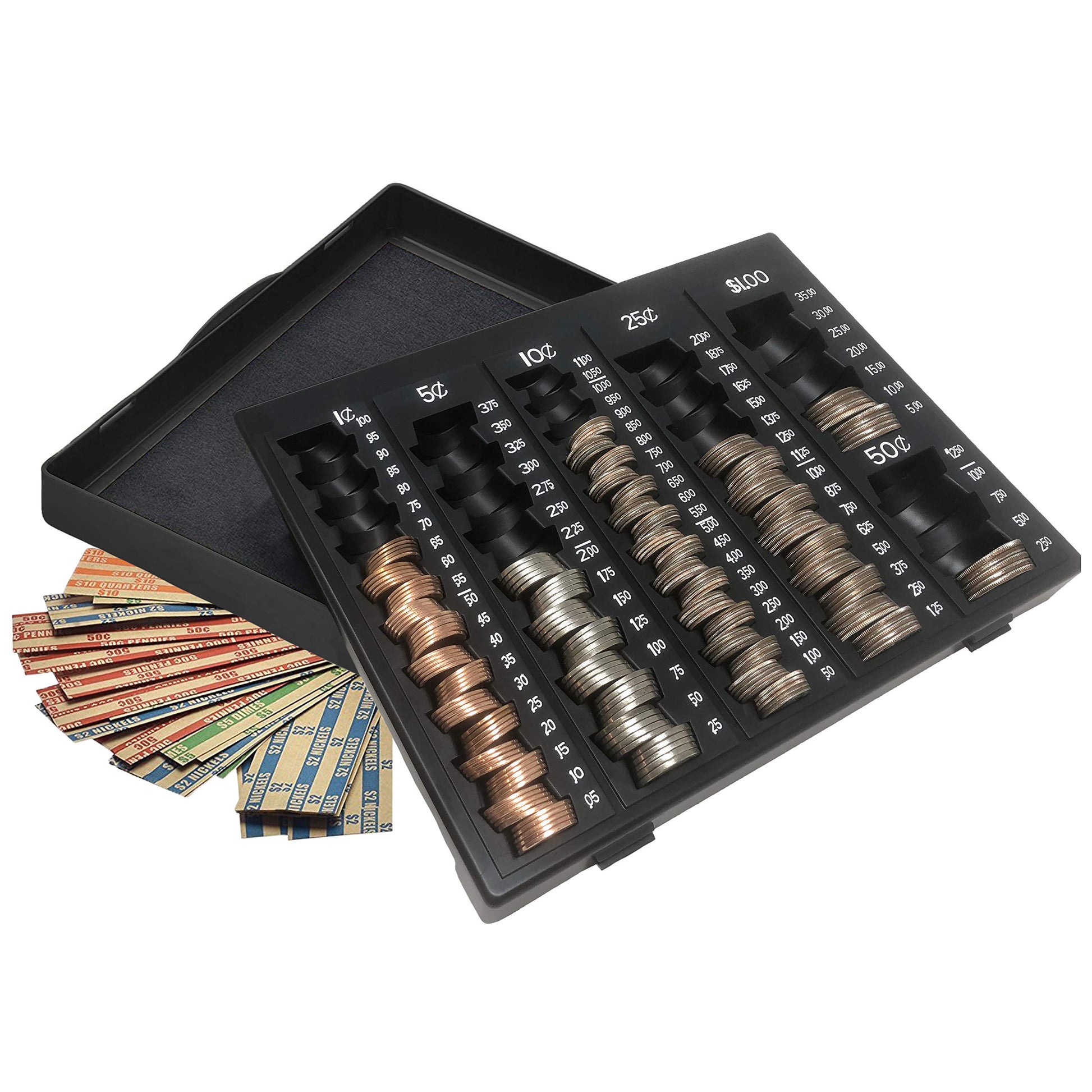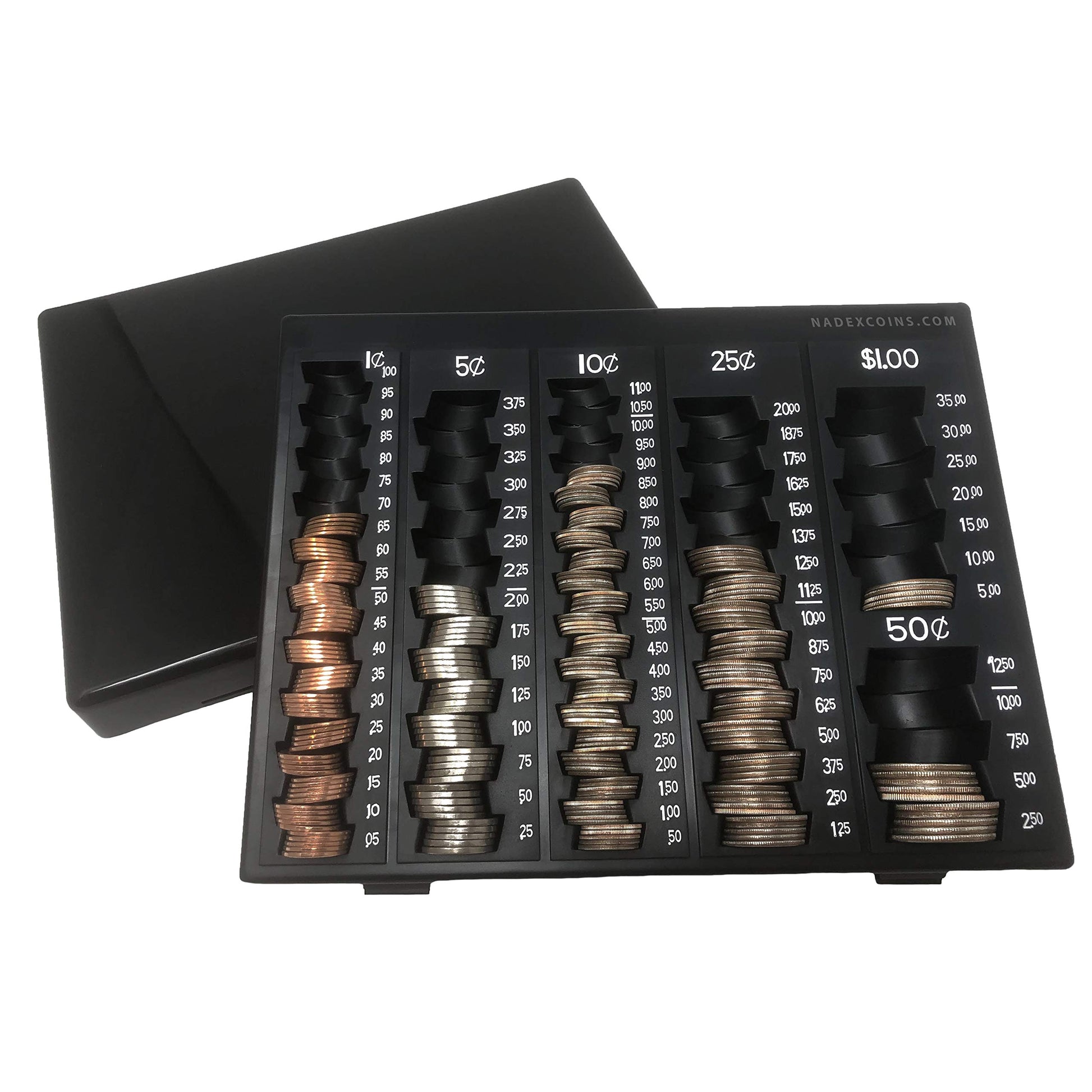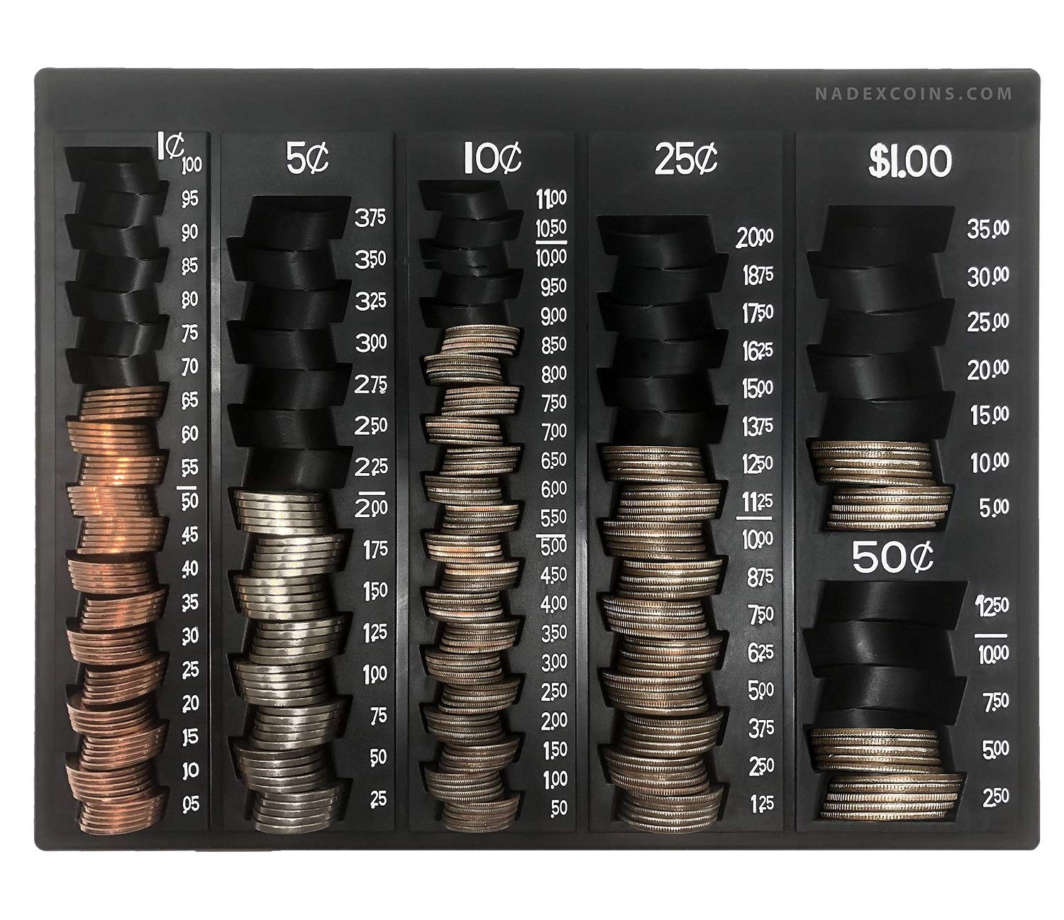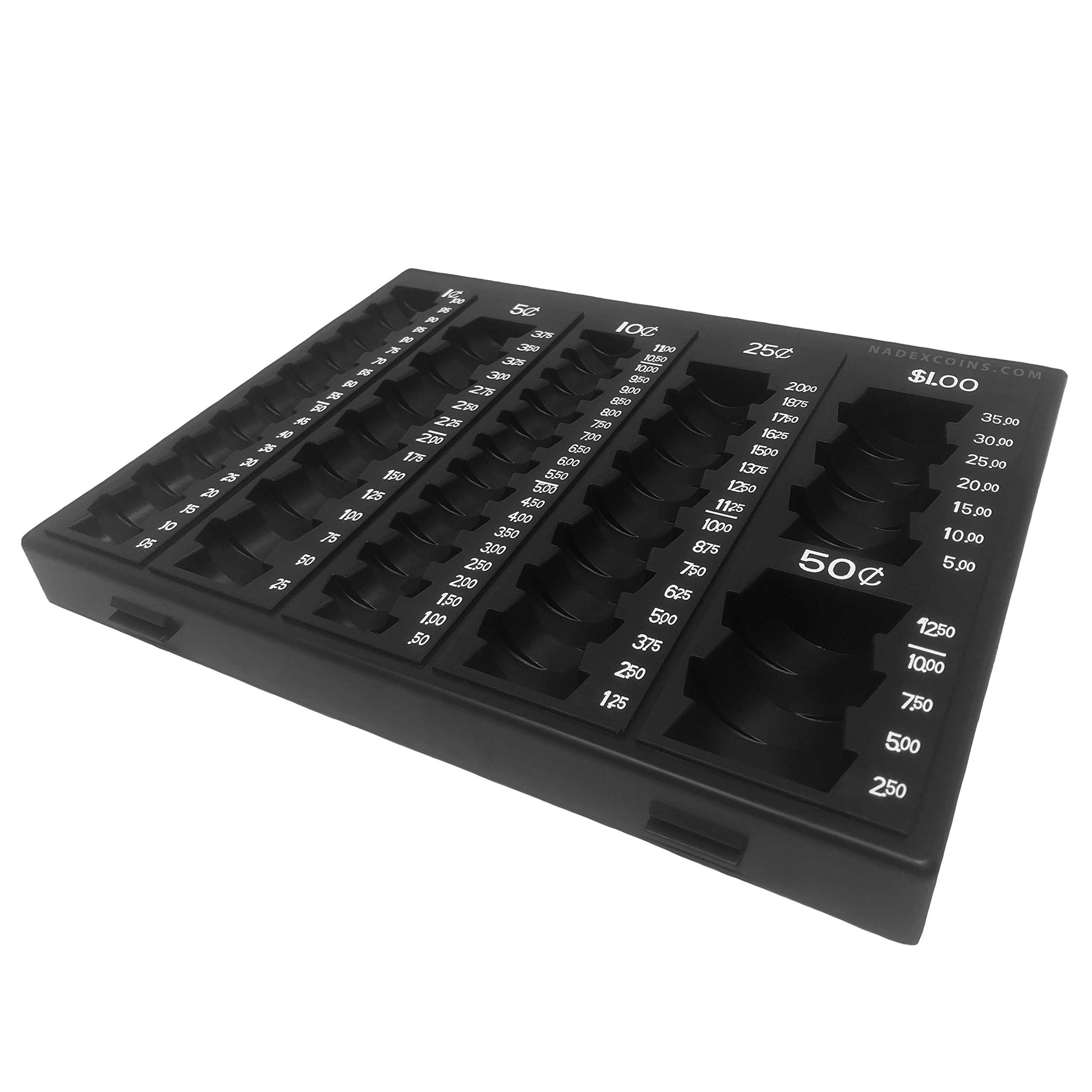 Higher Quality, Lower Price: Your Nadex Coin Sorter & Counting Tray is made from a super- strong thermoplastic. Our engineering team used thermoplastic because it is a material that is lightweight and durable.. What makes us different? Compared to other trays, you can count more coins across all 6 compartments. Also included is a cover, and a free set of coin wrappers. 8 each for Pennies, Nickels, Dimes, and Quarters!!!. Six Compartments: Denominations are clearly defined above each compartment for pennies, nickels, dimes, quarters, half dollars, and dollar coins. Cross reference: 221611003, 221611004. Great for Bank Tellers, Coin Sorting, Coin Wrapping, Shift Changes, Coin Collecting and Retail Businesses!. Our Nadex branded products are backed by a lifetime guarantee and to activate this warranty you can go to http://nadexcoins.com/lifetime-guarantee/