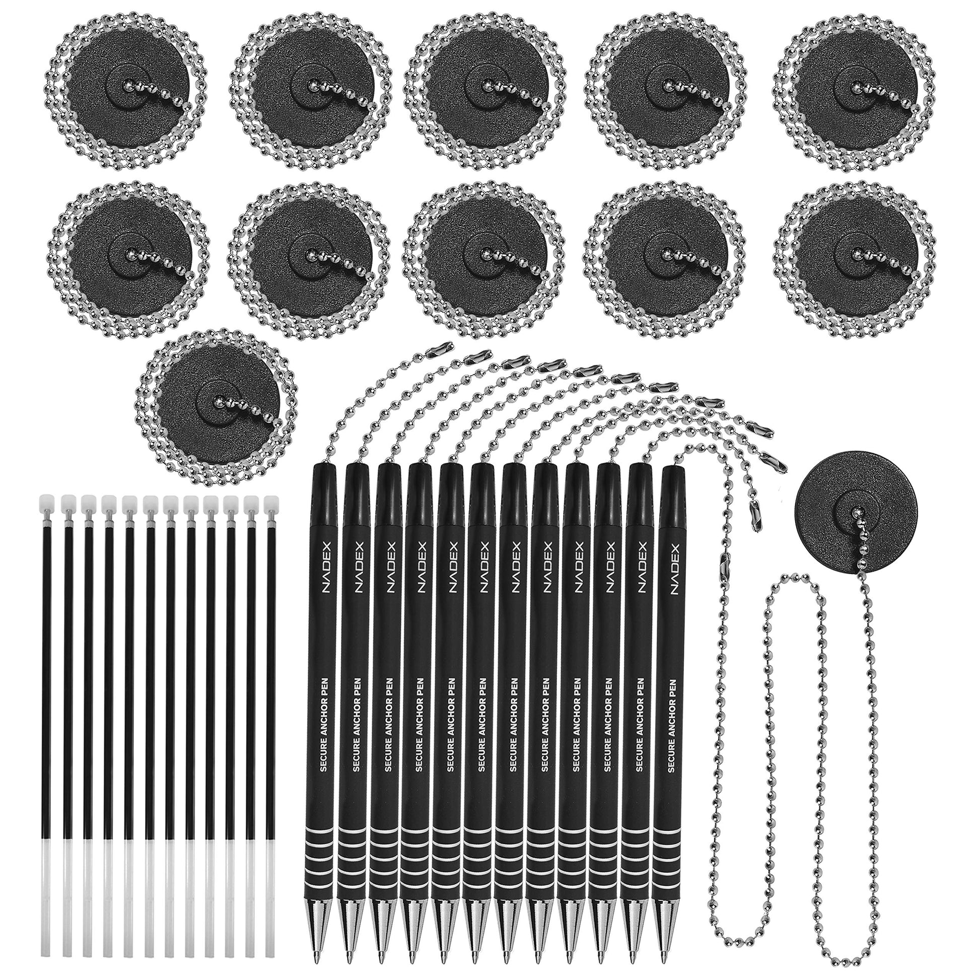 - Nadex Ball Chain Security Pens Set. Pack includes 12 Black Security Pens with ball chain, 12 Mounts, and 12 refills.