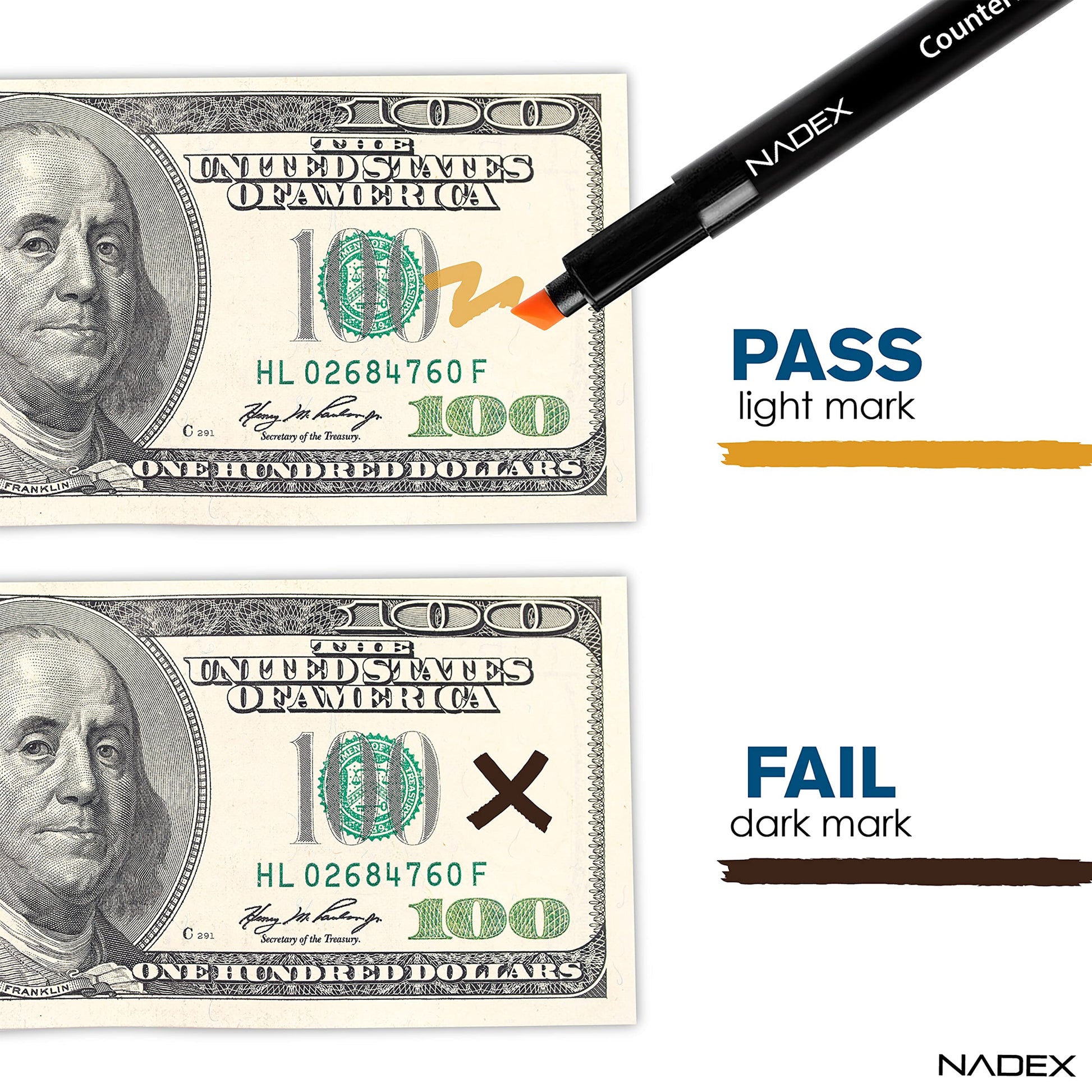 Nadex Counterfeit Pen, Easy Swipe - Gold for Real, Black for Fake, Detect Counterfeit Bills (1 Pack). Easily detect fake bills with our easy to use counterfeit bill detector. One swipe is all you need to sort out the fakes.