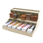 - 2-Tier rack offers divided compartments for coin wrappers and bill strap storage.