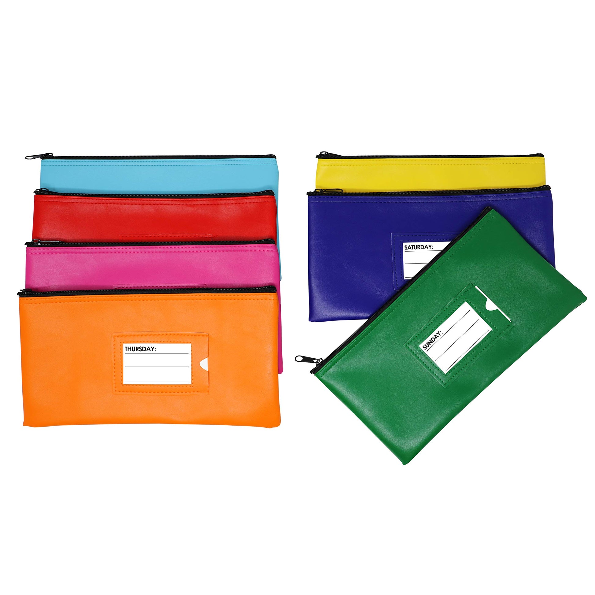 • Each Pouch Includes framed ID window with two cards, one blank and one with the Day of the week, Sunday through Saturday,