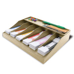 Nadex Cash Wrapper Organizer Tray - 6 Compartment Currency Bill Strap Holder with Utility Tray - Includes 100 Cash Wrappers (Beige). Six compartment bill strap holder with convenient utility tray to keep all your desk items neatly organized. Featuring an open design that allows for easy retrieval of contents from all compartments. Includes blank bill strap holders for custom payroll and more.