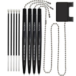 Nadex Ball and Chain Security Pen Set | 4 Pens, 1 Adhesive Mount, and 5 Refills (Black). Nadex Ball Chain Security Pens with 5 refills. Pack includes 4 Black Security Pen with ball and chain, 1 Base, and 5 refills.