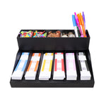 2-Tier rack offers divided compartments for coin wrappers and bill strap storage. Featuring an open design that allows for easy retrieval of contents from all compartments. The top tray is convenient for miscellaneous stationery storage. Includes blank bill strap holders for custom payroll and more.