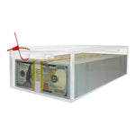 Nadex Clear Acrylic Cash Box with Slipping Cover - 5mm Box Thickness - 8mm Lock Hole - Includes 110 Pcs Bill Wrapper Straps. Ideal for Banks, Retailers, Stores, Money Exchange, Casinos, Nadex Clear Acrylic Cash Box with Slipping Cover includes a single large compartment and 110 Pcs bill wrapper straps. Helps keep your cash organized and serves as a place to store, large single compartment holds 2000+ notes strapped or loose and is ideal for cassette fills. Constructed with clear durable acrylic able to withstand up to everyday use, keeps your bills strapped, accessible & neatly organized. Light weight, stackable design makes these trays easy to maneuver. Sliding lockable cover prevents any unwanted intrusion, ideal for storing and/or transporting cash within a secure environment. Nadex manufactures a variety of coin management and money storage and security products. Customer satisfaction is out priority and our tamper evident bags come with a Lifetime Warranty. Please don’t hesitate to contact us with any questions or concerns.